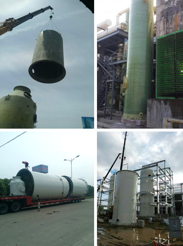 正在吊裝的洗滌塔?玻璃鋼洗滌塔